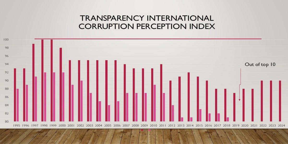 We are witnessing with growing alarm how corruption is becoming increasingly entrenched in our government, affecting the daily lives and future of our beloved Canada. This scourge is a threat to our next generations, and in the name of our faith and love for our neighbors, we cannot stand idly by. According to Transparency International, Canada has fallen on the Corruption Perceptions Index in recent years. According to data revealed by this organization, Canada ranked fifth among the 10 least corrupt countries in the world in 1995. Currently, our country's corruption has increased, dropping 10 places to 15th, further behind the most transparent countries. (Source: Transparency International).
